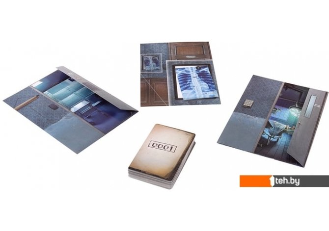 | Комплектация | 2 колоды (130 карт в Части 1 и 163 карты в Части 2), 2 дополнительные колоды (6 карт в Части 1 и 15 карт в Части 2), 29 конвертов (в каждом находятся некоторые предметы), 2 плана этажей больницы, 6 буклетов с подсказками и решениями, 6 листов учета времени, правила игры, 2 списка компонентов. |