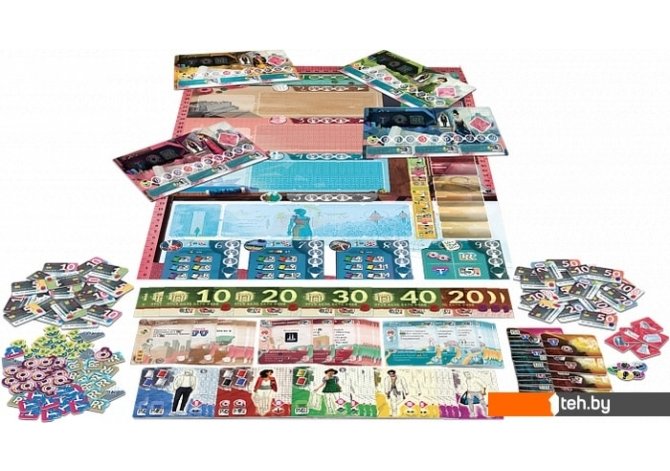 | Комплектация | Игровое поле4 Планшета игроков150 Игровых карточек184 Картонных жетона97 Деревянных фишекПравила игры |