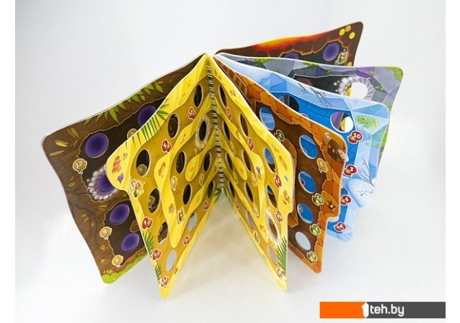 | Комплектация | - 58 карт.- Перелистываемое шестистраничное поле с отверстиями.- 5 деревянных игровых фишек.- 5 жетонов-«корзин».- Игральный кубик.- Правила игры. |