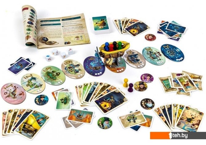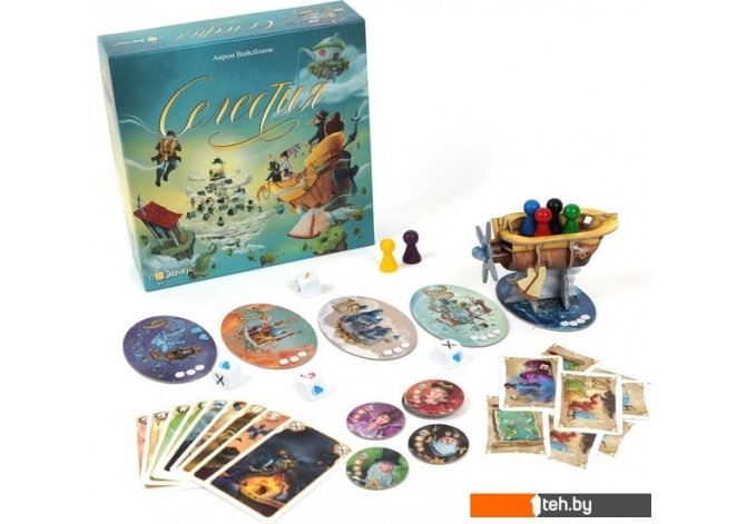 | Информация | Небесная страна Селестия прекрасна и загадочна. Её города полны тайн и сюрпризов, опасных испытаний и бесценных сокровищ. Есть только одна возможность попасть в Селестию - воздушный корабль! Земля, прощай! В добрый путь!Атмосферное приключение, полное непростых испытаний и поисков сокровищ. Это игра, в которой у всех участников есть общая цель, но победитель к концу партии будет только один. Активное взаимодействие, блеф, уловки и тактические хитрости - захватывающее путешествие гарантировано!Стань капитаном воздушного судна и постарайся провести его через все препятствия, открывай новые города и зарабатывай победные очки! Поверят ли тебе пассажиры или сойдут на берег? Чем дольше продлится путешествие, тем дороже будут найденные сокровища. |