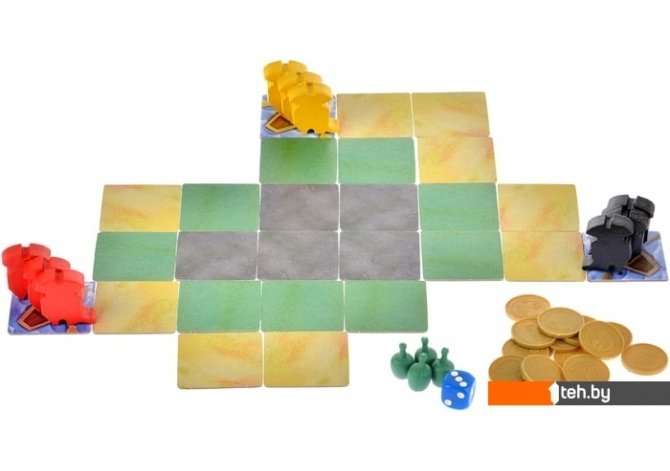 | Информация | Свистать всех наверх!Вперёд, за сокровищами старого пирата Шакала! Они зарыты на необитаемом острове… Или почти необитаемом: вместе с вами за кладом охотятся другие дерзкие флибустьеры! Разведайте местность, найдите золотые монеты и опередите других пиратов в гонке за богатством!Как игратьУ вас три пирата. Вы передвигаете их по острову, изучаете местность — переворачиваете закрытые клетки. Нашли клад — берёте монеты и несёте на корабль. Встретили чужого пирата — бьётесь с ним. Между делом можете искупаться в океане или полетать на воздушном шаре. Ваша задача — перетащить как можно больше золота на свой корабль. Маленькая пиратская хитрость: золото можно не только доставать из-под земли, но и отбирать у других пиратов! Или стащить оттуда, где оно плохо охраняется. |