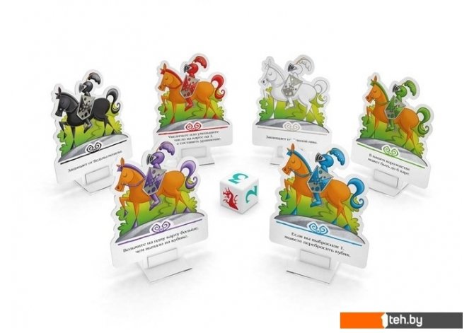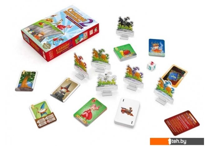 | Комплектация | 40 числовых карт (по четыре экземпляра от 1 до 10); 12 королев; 10 королей; 10 волшебных помощников; 6 рыцарей и подставок для них; 6 Диких гномов; 5 Ведьм-менял; 5 Сонных ив; 4 Книги чар; 2 памятки хода; 1 кубик; правила игры |