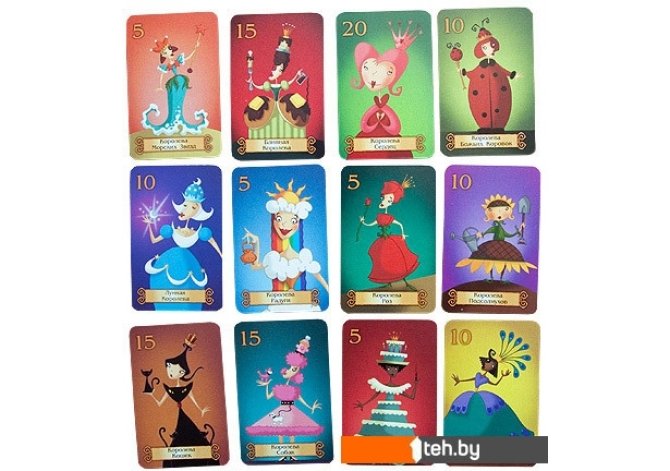 | Комплектация | 79 карт: - 12 Королев,- 8 Королей,- 5 Шутов,- 4 Рыцаря,- 4 Сонных зелья,- 3 Волшебные палочки,- 3 Дракона,- по 4 экземпляра карт с цифрами от 1 до 10;- правила игры на русском языке,- жестяная коробка. |