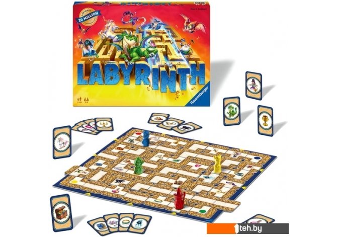 | Комплектация | Игровое поле 34 жетона с изображением лабиринта 24 карточки с сокровищами 4 фишки |