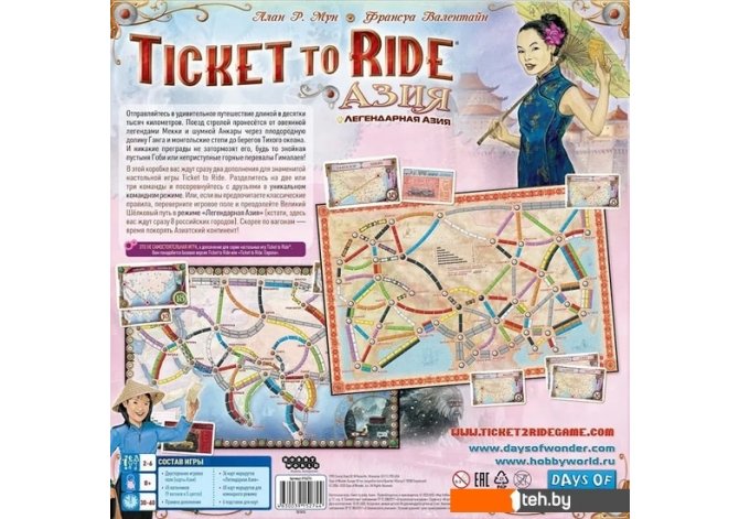 Фотографии, описание и технические характеристики модели настольной игры Мир Хобби Ticket to Ride. Азия взяты из открытых источников, официального сайта производителя или представительства Мир Хобби в Республике Беларусь.