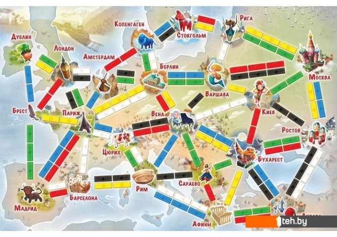 | Информация | Путешествие по Европе начинается! Машинист даёт последний гудок, призывая пассажиров по вагонам. Сегодня вы увидите Эйфелеву башню и Биг-Бен, полюбуетесь на голландские мельницы и соборы Барселоны, побываете на родинах Карлсона, Моцарта и графа Дракулы. И всё это — за время одной короткой поездки!Побеждает игрок, первым сумевшим провести все шесть маршрутов. Если игра заканчивается раньше (у игрока заканчиваются все вагончики), то побеждает игрок с наибольшим количеством законченных маршрутов, считая бонусный "С востока на запад". Победитель в качестве награды получает Золотой Билет! |