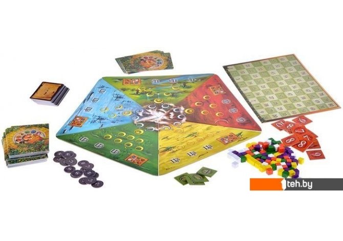 | Комплектация | - 64 карты зверей - 30 карт указов - Игровое поле - Планшет для подсчёта очков - 15 жетонов царств - 4 жетона отступления - 18 жетонов боевых модификаторов - 90 фишек влияния - 5 фишек подсчёта очков - Правила игры |