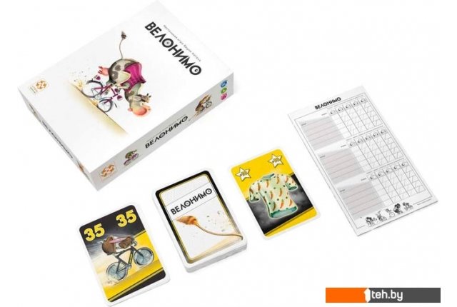 | Комплектация | 49 карт велогонщиков; 6 карт специалистов по отрыву; 1 карта с майкой лидера; блокнот для подсчёта очков; правила игры. |