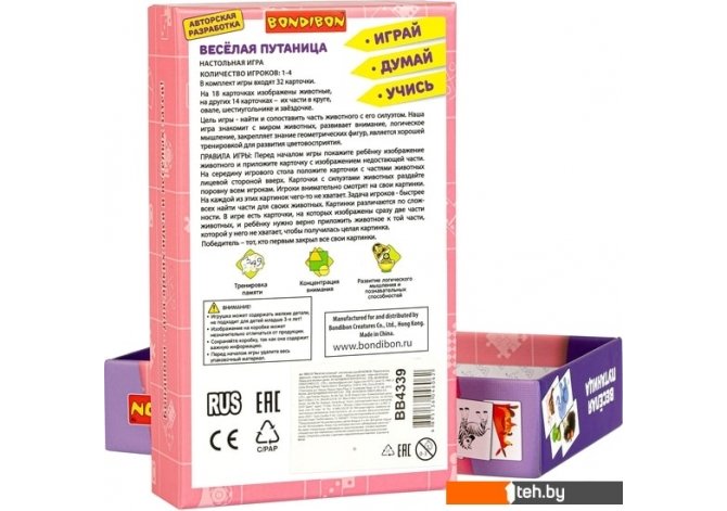 Фотографии, описание и технические характеристики модели настольной игры Bondibon Веселая путаница ВВ4339 взяты из открытых источников, официального сайта производителя или представительства Bondibon в Республике Беларусь.