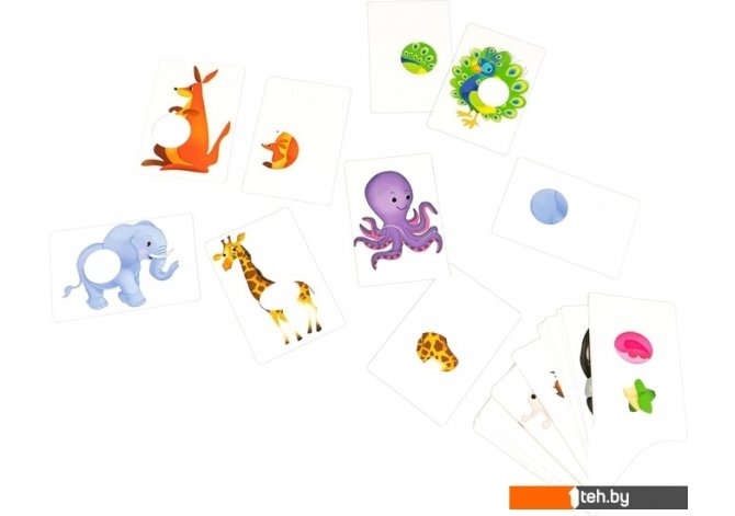 | Информация | Цель игры - найти и сопоставить часть животного с его силуэтом. Наша игра знакомит с миром животных, развивает внимание, логическое мышление, закрепляет знание геометрических фигур, является хорошей тренировкой для развития цветовосприятия. Перед началом игры покажите ребёнку изображение животного и приложите карточку с изображением недостающей части. На середину игрового стола положите карточки с частями животных лицевой стороной вверх. Карточки с силуэтами животных раздайте поровну всем игрокам. Игроки внимательно смотрят на свои картинки. На каждой из этих картинок чего-то не хватает. Картинки различаются по сложности. В игре есть карточки, на которых изображены сразу две части животных, и ребёнку нужно верно составить картинку. |