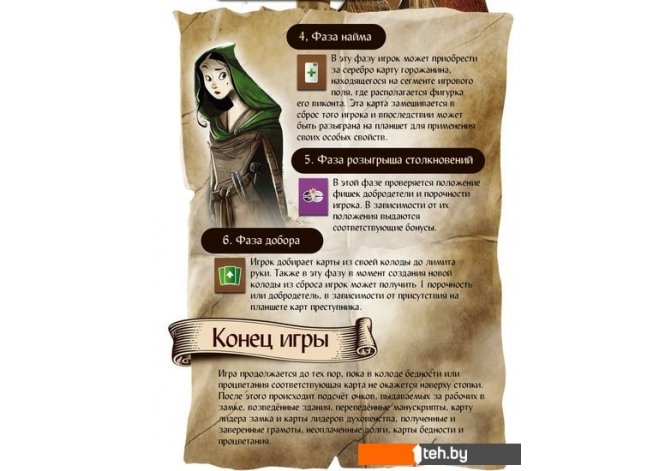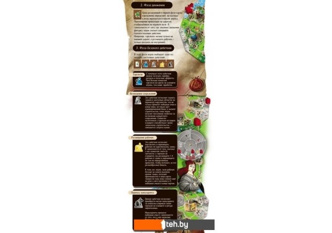 Комплектация | 80 рабочих (по 20 каждого цвета)4 фишки добродетели4 виконта12 гильдий12 факторий12 мастерских72 ресурса50 жетонов серебра35 жетонов манускриптовПластиковый 3D замокФишка первого игрока4 планшета игрока5 сегментов поля10 карт выдающихся граждан68 карт нейтральных граждан4 бонусные карты духовенства32 карты стартовых гражданКарта лидера замкаКарта бедностиКарта процветания10 карт игроков8 карт стартовых интриг8 карт будущих интриг4 карты множителя30 карт долгов30 карт грамотКарта-подсказка |