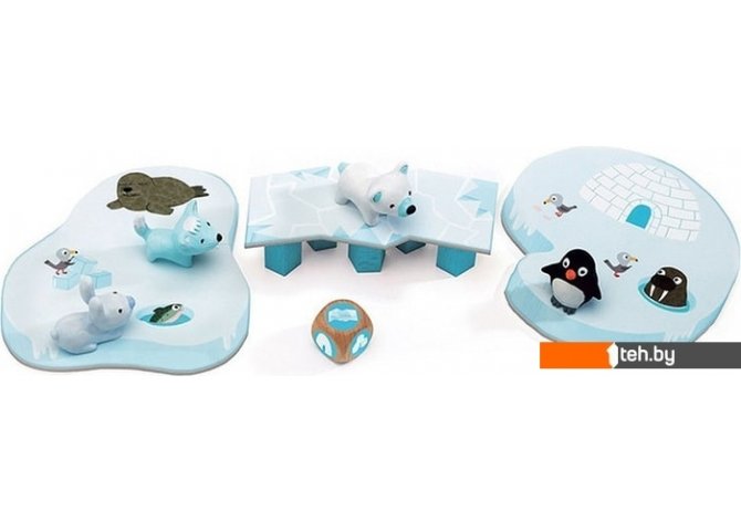 Информация | Игра порадует деток и в игровой форме научит командной работе и взаимопомощи.Четыре друга – жители крайнего Севера – пошли погулять по льдинам и теперь им нужно вернуться домой. Но их приключение – очень опасное, ведь ледяной мост – ненадежное сооружение, которое способно разрушиться в любую минуту.Каждый игрок во время своего хода может подвинуть вперед одного из животных, для этого игрок бросает кубик. Если выпадает "Мост" - зверька можно передвинуть на мост. Если на кубике выпадает "Хижина" - зверька можно сразу переместить к домику. А если на кубике выпадают льдинки, мостик начинает таять (нужно убрать одну из опор моста).В данной игре выигрывают или проигрывают все игроки сразу. Игра считается выигранной, если игрокам удалось переместить всех животных на поле "Хижина". |