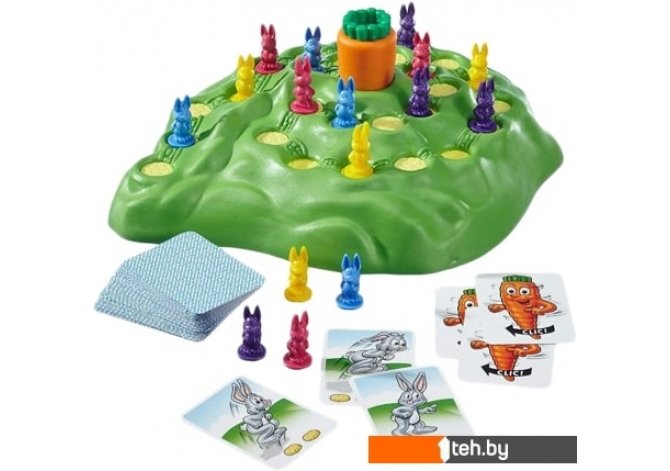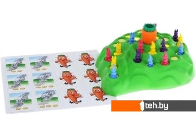 | Комплектация | 1 горка с морковкой, 16 зайчиков четырех цветов, 24 карточки прышков (действий), инструкция |