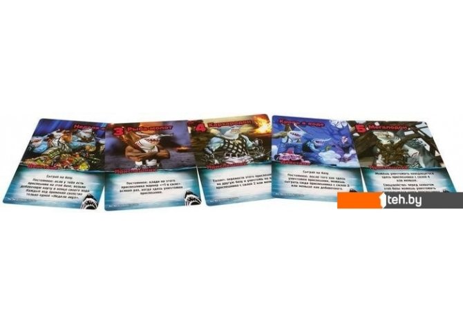 | Комплектация | 5 фракций по 20 карт 10 карт баз Жетоны победных очков Правила игры |