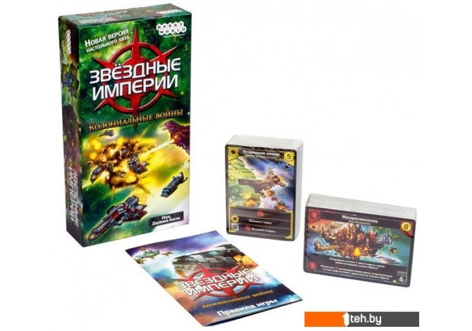 | Информация | В далёком будущем новые, богатые ресурсами колонии привлекают внимание космических сверхдержав. Слизни, Технокульт, Звёздная империя и Торговая федерация стоят на пороге открытого противостояния. Сможете ли вы победить в колониальных войнах? Или вам суждено увидеть закат вашей цивилизации?«Звёздные империи: Колониальные войны» — полностью самостоятельная игра, в которой вас ждёт больше 40 новых видов космических кораблей и аванпостов. Вы можете смешать «Колониальные войны» с базовыми «Звёздными империями» или дополнением «Гамбит», чтобы разнообразить ваши космические сражения и увеличить число игроков!*В «Звёздные империи» могут играть от 2 до 6 участников. Вам понадобится комплект «Звёздных империй» для игры втроём и вчетвером и третий комплект для игры впятером и вшестером. |