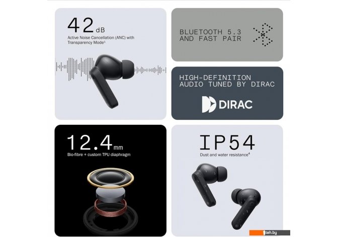 | Метки | беспроводные, с микрофоном (гарнитура), вкладыши TWS, с активным шумоподавлением, для смартфона, с влагозащитой |