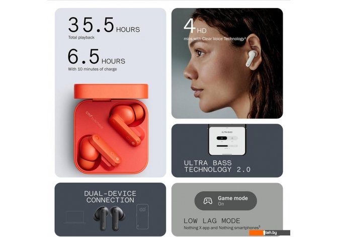 Фотографии, описание и технические характеристики модели наушников CMF Buds (оранжевый) взяты из открытых источников, официального сайта производителя или представительства CMF в Республике Беларусь.