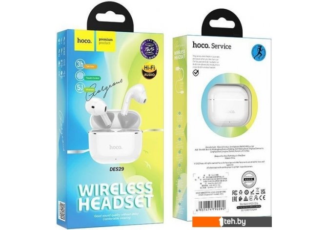 Фотографии, описание и технические характеристики модели наушников Hoco DES29 (белый) взяты из открытых источников, официального сайта производителя или представительства Hoco в Республике Беларусь.