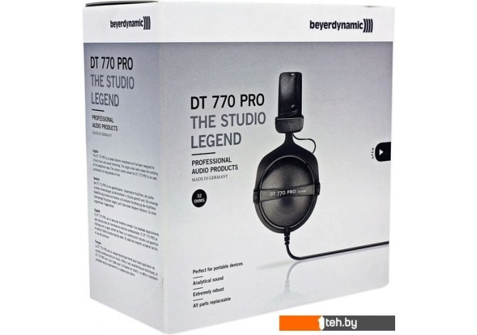 Если хотите купить наушники Beyerdynamic DT 770 PRO 32 Ohm то следует уточнить все параметры и габариты модели перед покупкой. Представленые характеристики на сайте 1teh.by могут отличаться от действительных или указанных производителем. Описание, фото товара и технические характеристики представлены для справки.