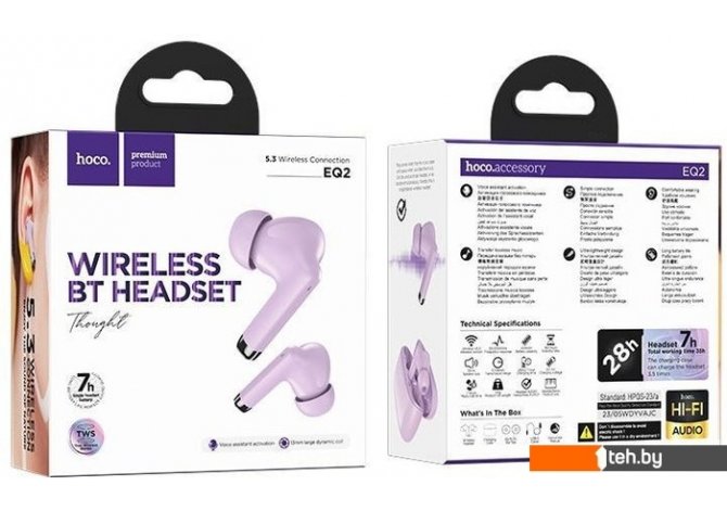 Фотографии, описание и технические характеристики модели наушников Hoco EQ2 (сиреневый) взяты из открытых источников, официального сайта производителя или представительства Hoco в Республике Беларусь.
