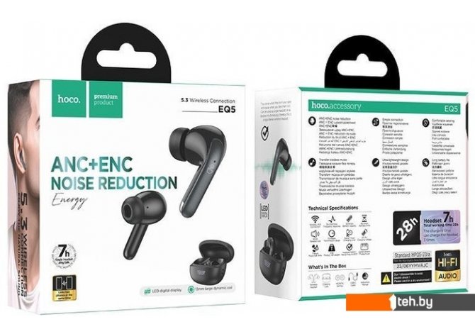 | Информация | ? Наушники Hoco EQ5 - бюджетные TWS-наушники с внутриканальной конструкцией и Bluetooth 5.3 чипом JL AC7006A8. ? Они оборудованы шумоподавлением ANC+ENC и цифровым дисплеем батареи для удобства использования. |