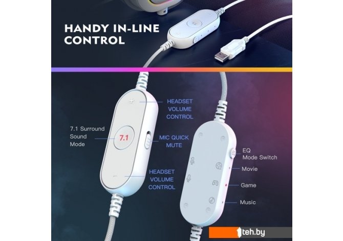 | Функции управления | Да активация объемного звучания, переключение пресетов эквалайзера, приглушение микрофона (mute) |