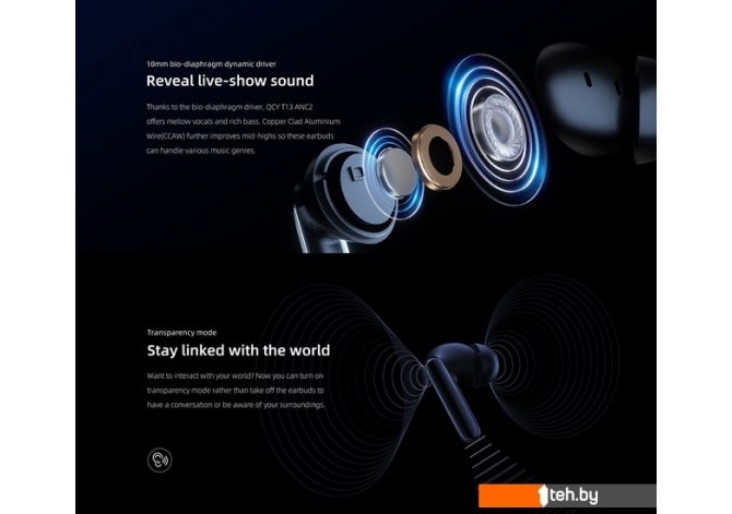 Фотографии, описание и технические характеристики модели наушников QCY T13 ANC 2 (черный) взяты из открытых источников, официального сайта производителя или представительства QCY в Республике Беларусь.