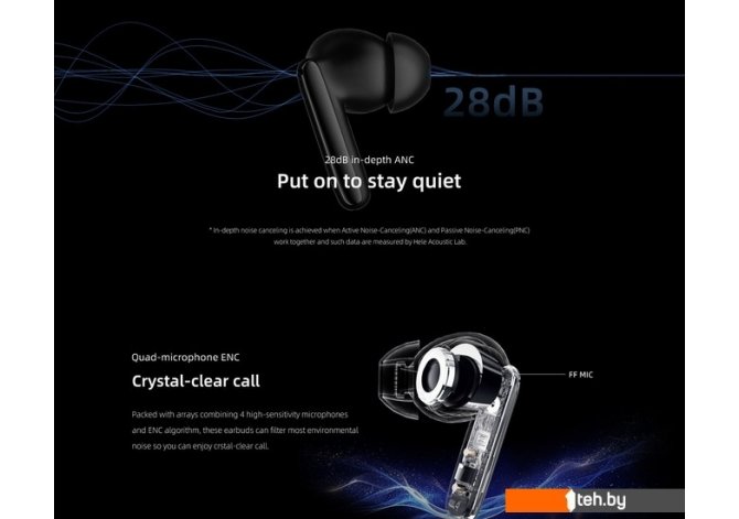 | Метки | беспроводные, с микрофоном (гарнитура), вкладыши TWS, с активным шумоподавлением, для смартфона, с влагозащитой |