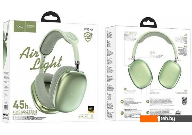 Фотографии, описание и технические характеристики модели наушников Hoco W35 Air (зеленый) взяты из открытых источников, официального сайта производителя или представительства Hoco в Республике Беларусь.