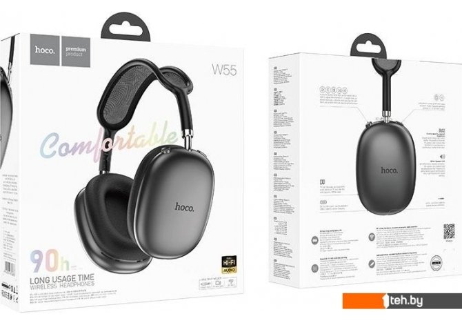 | Информация | Беспроводные наушники Hoco W55 — это стильный и удобный аксессуар для любителей музыки и активного образа жизни. Они обеспечивают качественное звучание до 90 часов благодаря ёмкому аккумулятору и технологии Bluetooth 5.4. |