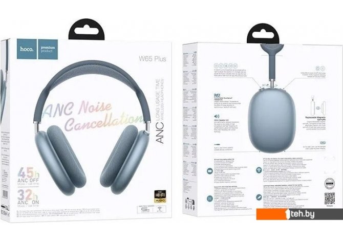 Фотографии, описание и технические характеристики модели наушников Hoco W65 Plus (голубой) взяты из открытых источников, официального сайта производителя или представительства Hoco в Республике Беларусь.