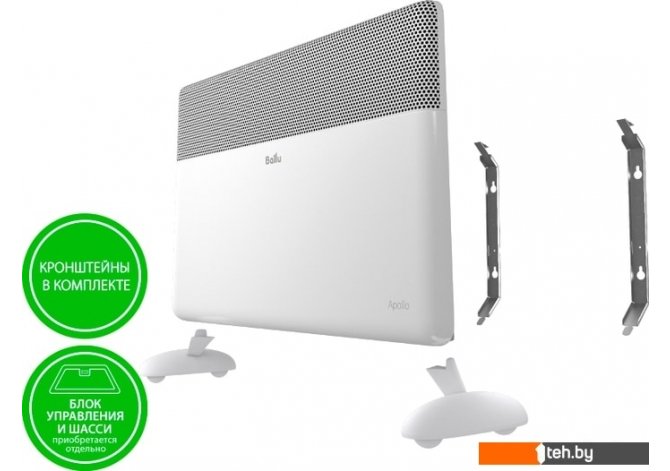 | Информация | Серия Apollo – это электрические конвекторы нового поколения, разработанные на основе инновационной технологии TRANSFORMER SYSTEM, которая позволяет самостоятельно выбрать комплектацию конвектора из 50 возможных вариантов: Выберите отопительный модуль необходимой мощности – 1500, 2000 или 2500 Вт. Все модули оснащены современным бесшумным нагревательным элементом HEDGEHOG. Запатентованная технология HEDGEHOG – это монолитный нагревательный элемент нового поколения на 20% компактнее и эффективнее стандартных нагревательных элементов, позволяющий быстрый и эффективно обогревать помещение. Подберите блок управления – надёжный механический, сверхточный электронный или энергоэффективный digital INVERTER. При выборе блока управления с технологией digital INVERTER вы приобретаете не только расширенный функционал, но и существенную экономию электроэнергии. По результатам исследований РСТ, ИЗТТ, МГСУ, TUV экономия электроэнергии составляет 70% (в сравнении с конвекторами с механическим управлением). Это позволяет окупить конвектор в максимальной комплектации всего за 1 месяц! Продумайте необходимый вариант установки конвектора – настенный (кронштейны в комплекте) или напольный (стильные и устойчивые шасси – приобретаются отдельно); Расширьте возможности конвектора с помощью съемного модуля Wi-Fi и управляйте им удаленно через фирменное приложение HOMMYN (работает с блоком управления digital INVERTER). Абсолютная безопасность электрических конвекторов Apollo Transformer System подтверждена сертификатом МЧС. Для работы конвектора Apollo необходимо обязательно выбрать один из трех блоков управления и при необходимости напольной установки – шасси. https://catalog.onliner.by/compare/bctevu3m+bctevu3e+bctevu3i Запатентованный нагревательный элемент с уникальной технологией HEDGEHOG. Нагрев на 20% быстрее, размер на 20% компактнее за счет увеличенной площади теплоотдачи, температура на 15% ниже, бесшумная работа. Срок службы 25 лет. Полноразмерная воздуховыпускная решетка Flow Screen. 4D поток тепла – равномерное распределение тепла по всей площади помещения. Более быстрый и плавный обогрев. Класс пылевлагозащищенности: IP24 Защита от перегрева; Защита от опрокидывания; Воздухозаборник INTAKE PRO: специальные крепления ножек не перекрывают вход воздуха, что обеспечивает более высокую эффективность работы конвектора. Съемный блок управления нового поколения 3.0 (приобретается отдельно на выбор: BCT/EVU-3M, BCT/EVU-3E, BCT/EVU-3I). Кронштейн для настенной установки в комплекте; Комплект шасси для напольной установки BFT/AT (приобретаются отдельно); |