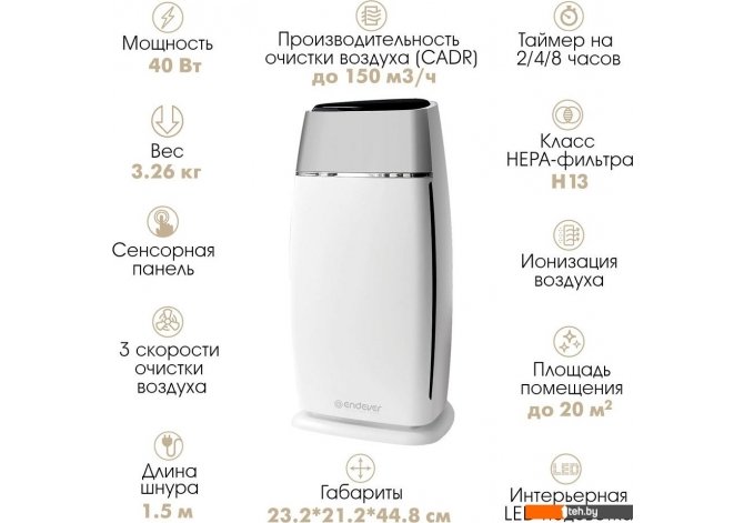 Если хотите купить очиститель воздуха Endever Oasis-290 то следует уточнить все параметры и габариты модели перед покупкой. Представленые характеристики на сайте 1teh.by могут отличаться от действительных или указанных производителем. Описание, фото товара и технические характеристики представлены для справки.