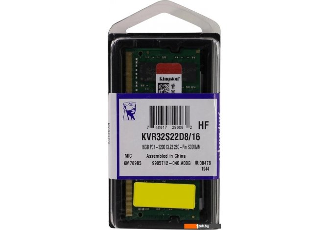 Фотографии, описание и технические характеристики модели оперативной памяти Kingston 16GB DDR4 SODIMM PC4-25600 KVR32S22D8/16 взяты из открытых источников, официального сайта производителя или представительства Kingston в Республике Беларусь.
