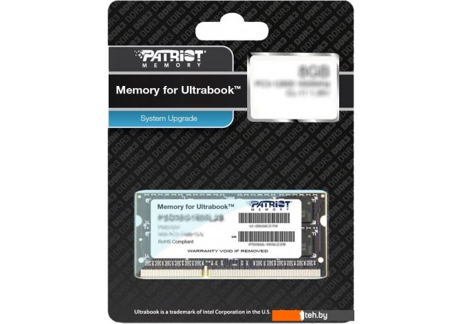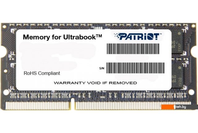 Фотографии, описание и технические характеристики модели оперативной памяти Patriot Memory for Ultrabook 8GB DDR3 SO-DIMM PC3-12800 (PSD38G1600L2S) взяты из открытых источников, официального сайта производителя или представительства Patriot в Республике Беларусь.