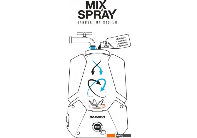 | Информация | - 21В Li-ion единая платформа Модель совместима со всеми аккумуляторными инструментами и батареями DAEWOO линейки 21В. - Функция смешивания MIX & SPRAY Раствор для распыления легко приготовить в самом баке опрыскивателя благодаря работе дополнительной помпы, которая создает водяной поток внутри бака и способствует эффективному растворению в воде пестицидов, гербицидов, удобрений или моющих средств. - Плавная регулировка давления Удобный большой регулятор давления позволяет включить инструмент и настроить давление от 1,5 до 5 бар, при этом дальность струи может достигать 8 м. - Высокопроизводительная помпа Опрыскиватель оснащен мощным насосом, который обеспечивает производительность до 3 л/мин, что позволяет распылять более 350 л жидкости на одном заряде аккумулятора. Функция Auto Stop, которая отключает насос при отсутствии распыления и экономит заряд батареи, увеличит время работы опрыскивателя до 20%. - Широкая горловина с фильтром грубой очистки Широкая горловина опрыскивателя делает наполнение бака очень удобным, а установленный на ней фильтр грубой очистки предотвращает попадание крупных частиц в бак и защищает насос от повреждения. - 6 насадок в комплекте Широкий набор насадок, идущих в комплекте, позволяет подобрать оптимальную для выполнения задач по уходу за садом, дезинфекции и нанесению моющих средств. |