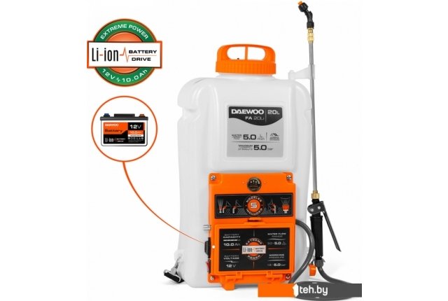 | Информация | Ёмкий аккумулятор и зарядное устройство в комплекте; Индикатор заряда батареи; Телескопическая штанга из нержавеющей стали с бронзовыми фиксаторами; Штанга регулируется по длине от 80 до 120 см; Заливная горловина со съемным фильтром; Регулировка подачи жидкости; Система автоматической остановки; Рукоятка с возможностью фиксации для непрерывной работы; 5 распыляющих насадок в комплекте; Профессиональный ранцевый ремень в комплекте. |