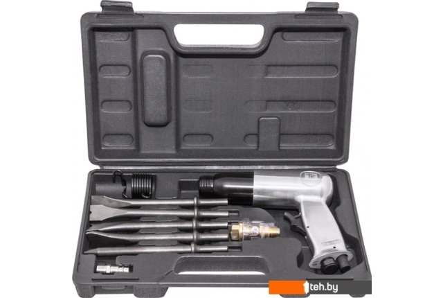 Комплектация | - Молоток пневматический - Штуцер подключения 1/4"DR, тип "Евро" - Пружина - Насадки, 170 мм, 5 шт. - Линейный лубрикатор - Пластиковый кейс |
