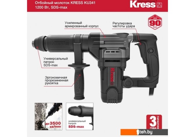 Фотографии, описание и технические характеристики модели Отбойного молотка Kress KU341 взяты из открытых источников, официального сайта производителя или представительства Kress в Республике Беларусь.