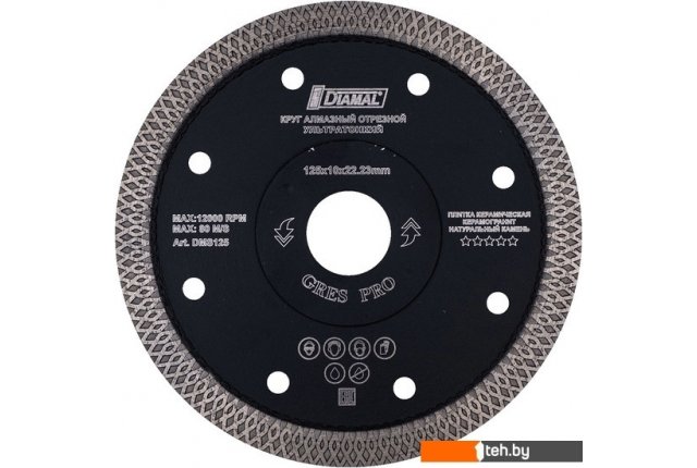 | Информация | Ультра тонкий быстрорежущий алмазный диск 125 мм DMS125 предназначен для чистой и ровной резки всех видов керамогранита, керамической плитки, натурального камня толщиной до 20 мм. Круг показывает хорошие результаты при резке материала под углом 45°. |