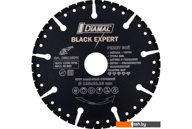 | Информация | Диск алмазный 125 мм DM125PR DIAMAL предназначен для резки стали, цветных металлов, чугуна, трубы SML. |