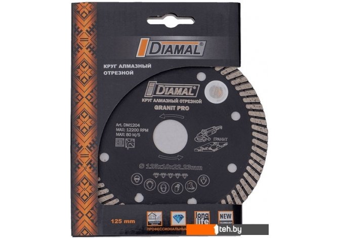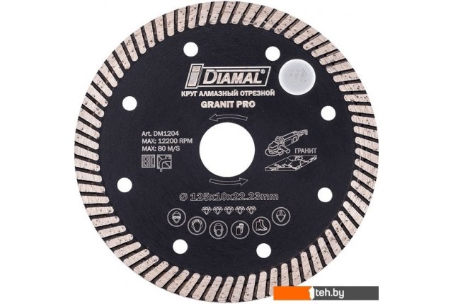 | Информация | Диск алмазный 125 мм DM1204 Диамал специально разработан для высокоэффективной работы с гранитом на всех типах болгарок и ручных УШМ. Круг серии GRANIT PRO работает без использования охлаждающей жидкости, имеет высокий ресурс и делает ровный рез без сколов. |