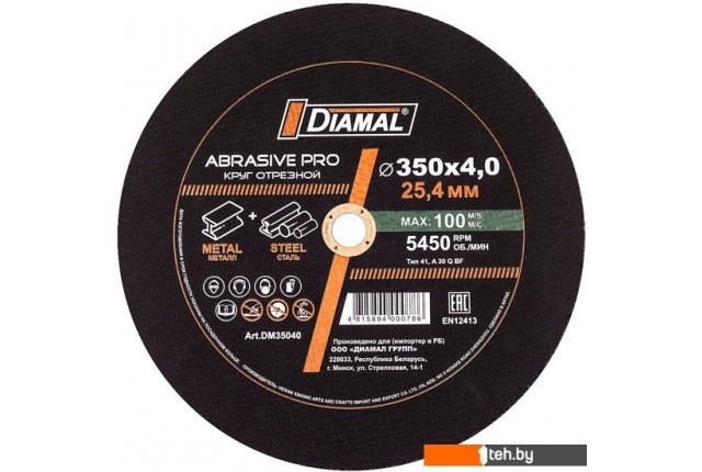 | Информация | Армированный абразивный круг на бакелитовой связке ABRASIVE PRO DIAMAL 350 мм обладает высоким качеством реза, без образования заусенцев. Предназначен для работы с металлом и сталью. Скорость реза, высокая износостойкость, комфортность работы позволяют кругу ABRASIVE PRO DIAMAL 350 мм быть востребованным на рынке абразивной оснастки. |