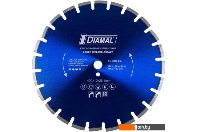 | Информация | Алмазный диск по асфальту DIAMAL DMA400 предназначен для резки асфальтобетонного покрытия, свежего бетона. Применяется при строительстве автомобильных дорог и проведении ямочного ремонта. Лазерная сварка сегментов к корпусу диска обеспечивает высокую производительность и хороший ресурс при работе на машинах до 10 kW. Специальный корпус диска и наклонный защитный сегмент позволяет избежать быстрого износа стального корпуса диска в точке соединения с алмазным сегментом, который приводит к отрыву и потере сегмента. Качественный алмазный диск ДИАМАЛ LAZER WELDED ASFALT для сухой и мокрой резки асфальта швонарезчиком, асфальтобетона и свежего бетона бензорезом, нарезчиком швов. |