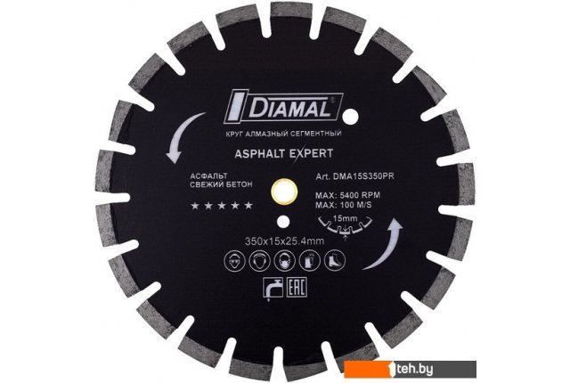 | Информация | Алмазный диск с высотой сегмента 15 мм DMA15S350PR подходит для профессиональной резки асфальта и свежего бетона на машинах мощностью от 7 до 15 кВт. Характеризуется высокой скоростью резания и повышенным ресурсом. Специальные наклонные сегменты защищают корпус алмазного диска от подрезания и быстрого износа.Водяное охлаждение алмазного круга во время резки и периодическое охлаждение его на холостом ходу значительно увеличивают ресурс его работы. |