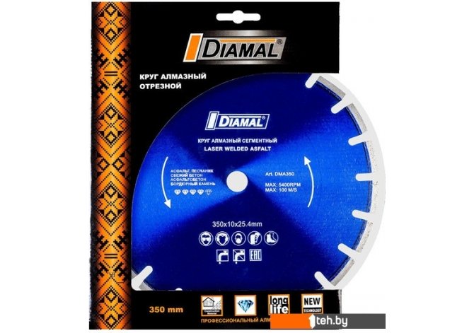 | Информация | Алмазный диск по асфальту DIAMAL DMA350 предназначен для резки асфальтобетонного покрытия, свежего бетона. Применяется при строительстве автомобильных дорог и проведении ямочного ремонта. Лазерная сварка сегментов к корпусу диска обеспечивает высокую производительность и хороший ресурс при работе на машинах до 7 kW. Специальный корпус диска и наклонный защитный сегмент позволяет избежать быстрого износа стального корпуса диска в точке соединения с алмазным сегментом, который приводит к отрыву и потере сегмента. Качественный алмазный диск ДИАМАЛ LAZER WELDED ASFALT для сухой и мокрой резки асфальта швонарезчиком, асфальтобетона и свежего бетона бензорезом, нарезчиком швов. |