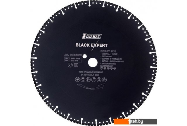 | Информация | Диск алмазный 350 мм DM350PR DIAMAL предназначен для резки стали, цветных металлов, чугуна, трубы SML. |