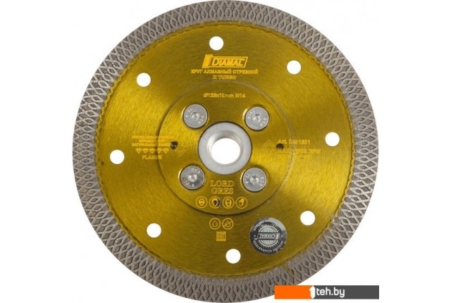 | Информация | Быстрорежущий алмазный диск LORD GRES 125 мм c фланцем М14 DM1301 предназначен для чистой и ровной резки всех видов керамогранита, керамической плитки, натурального камня толщиной до 20 мм. Отличный результат при резке под углом 45°. Благодаря оптимальной концентрации алмазов в алмазной кромке LORD GRES и её специальной форме достигается максимальная скорость резки и очень высокий ресурс работы диска. Круг LORD GRES DIAMAL 125 мм с фланцем М14 относится к категории алмазного инструмента PRO. |
