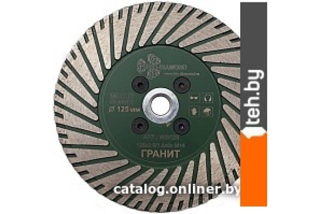 | Информация | Особенности: Универсальные диски для работы с натуральным камнем. За счет увеличенной площади рабочей поверхности позволяют выполнять широкий спектр работ по резке, шлифовки и снятию фасок. Фланец М-14 позволяет устанавливать данный диск на УШМ без зажимной гайки. Технология производства: Горячее прессование |