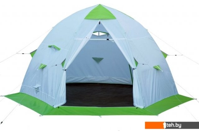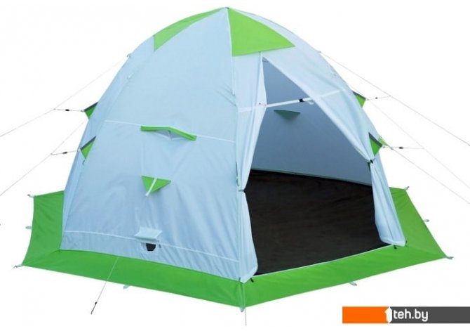 | Информация | Российские разработчики создали палатку «Лотос 5» для любителей зимней рыбалки. Это довольно высокое и объёмное изделие с «жилой» площадью 9 квадратных метров. В ней комфортно смогут рыбачить и проводить досуг до пяти взрослых человек в зимней одежде. Под зимнюю рыбалку палатка «Лотос 5» была модифицирована в 2017 году.Пол влагозащитный ЛОТОС 5У (ПУ4000) (крепится на тракторной молнии). |